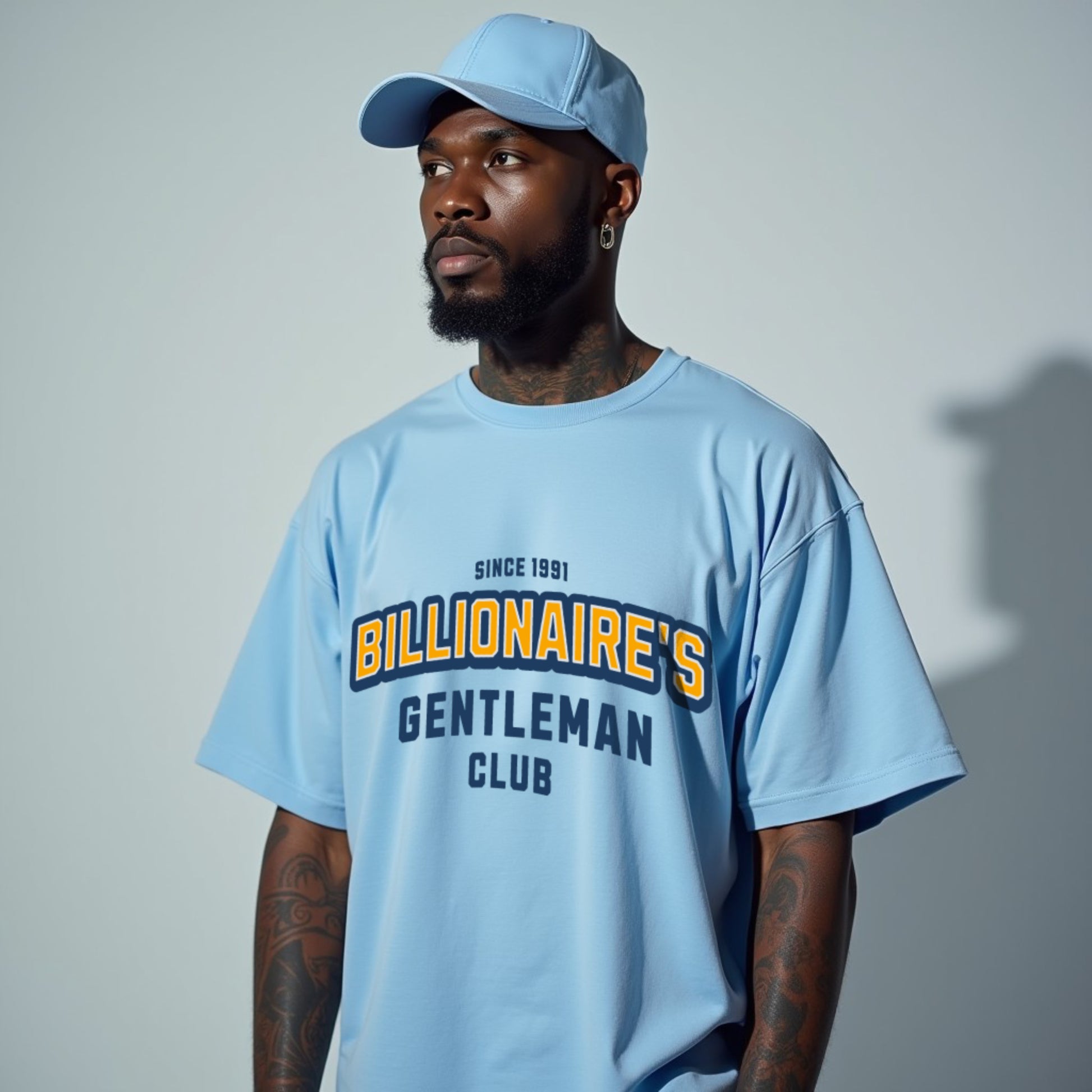 Billionaire Premium Baby Blue Oversized Typography T-shirt