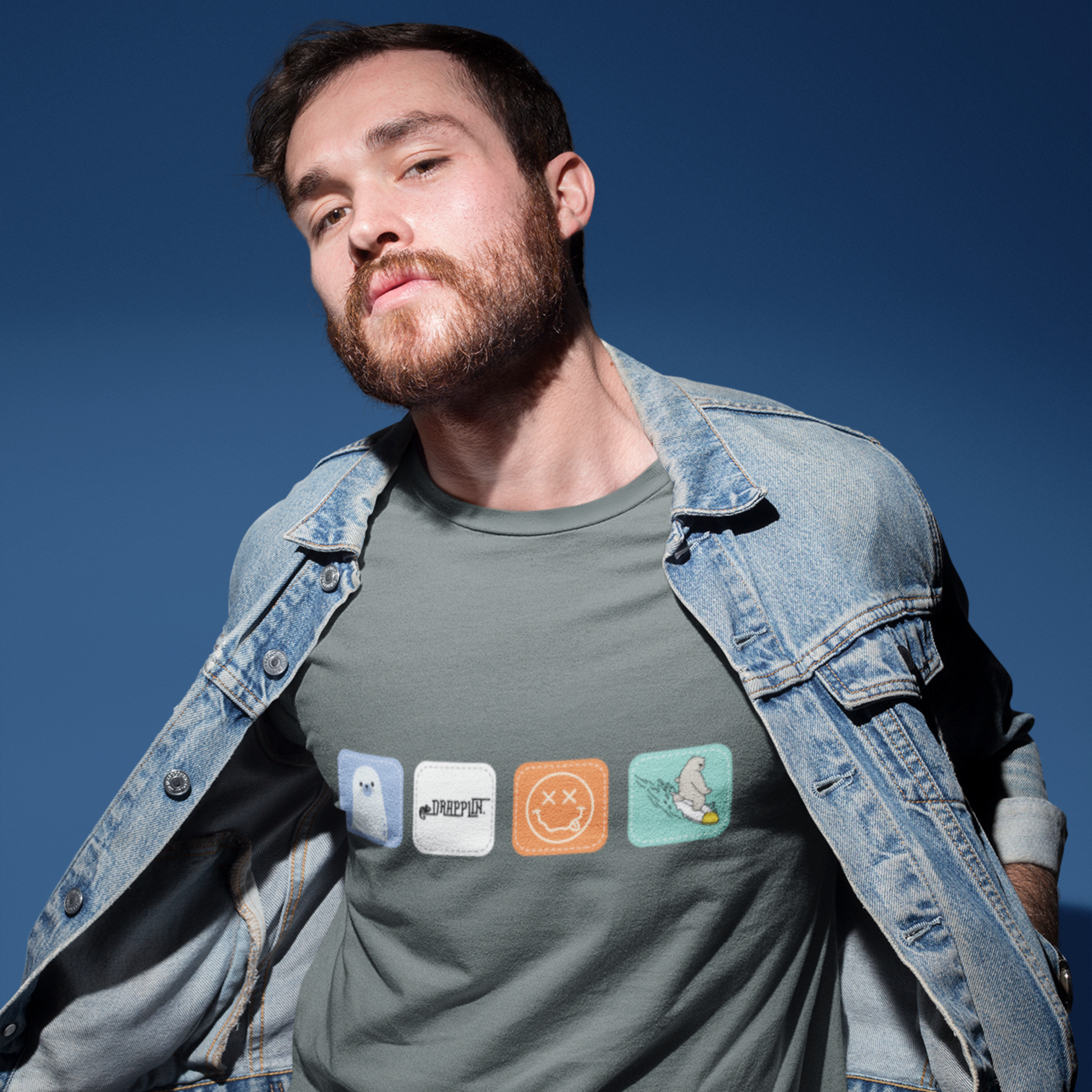 Drapplin Boxes Steel Grey Crew Neck Graphic Printed T-shirt