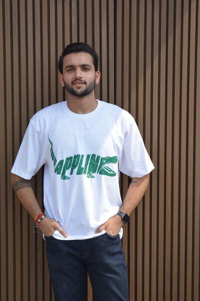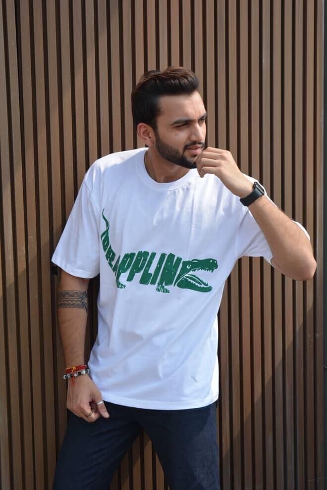 Drapplin Finest Premium White Oversized Printed T-shirt