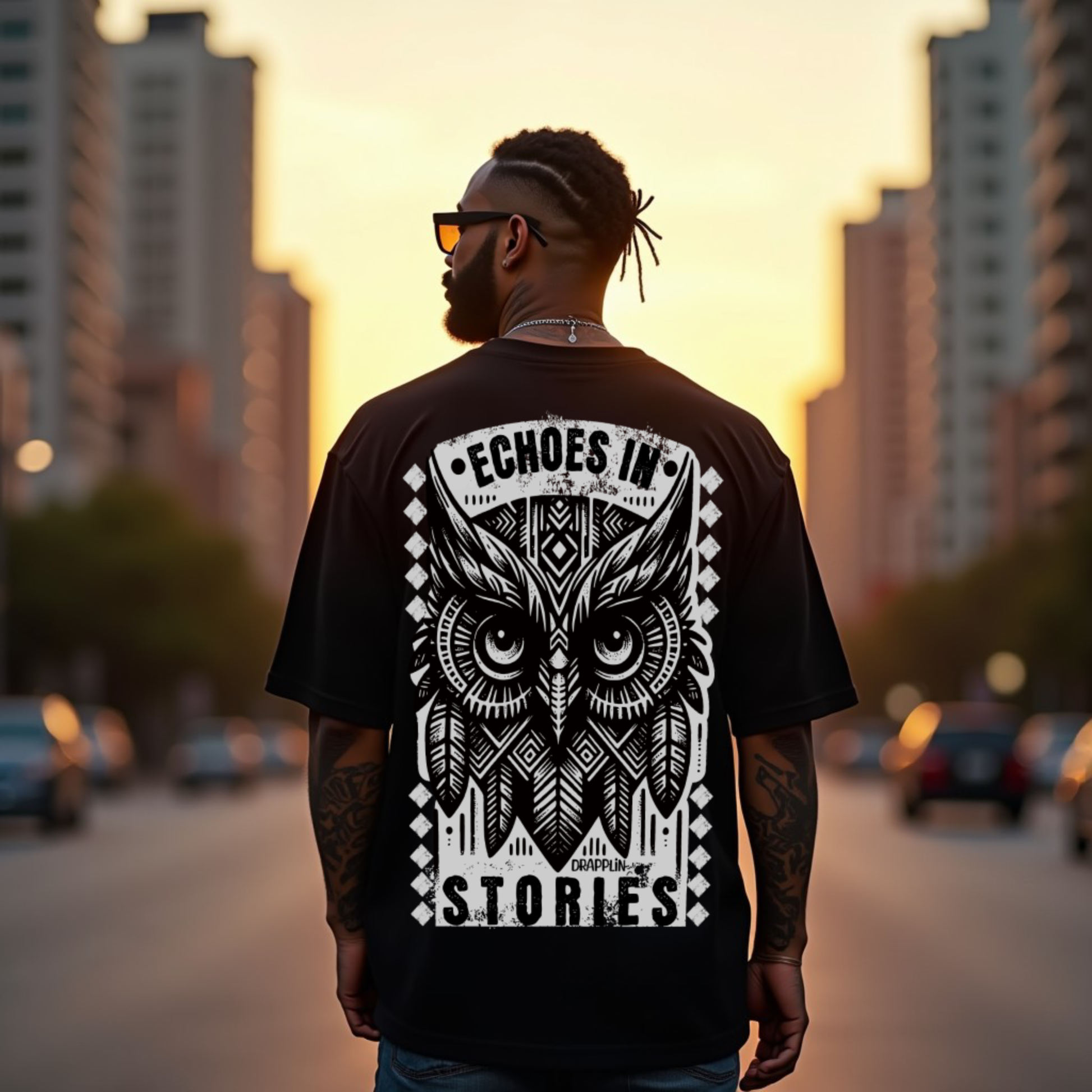 Echoes Premium Black Oversized Typography Back Printed T-shirt