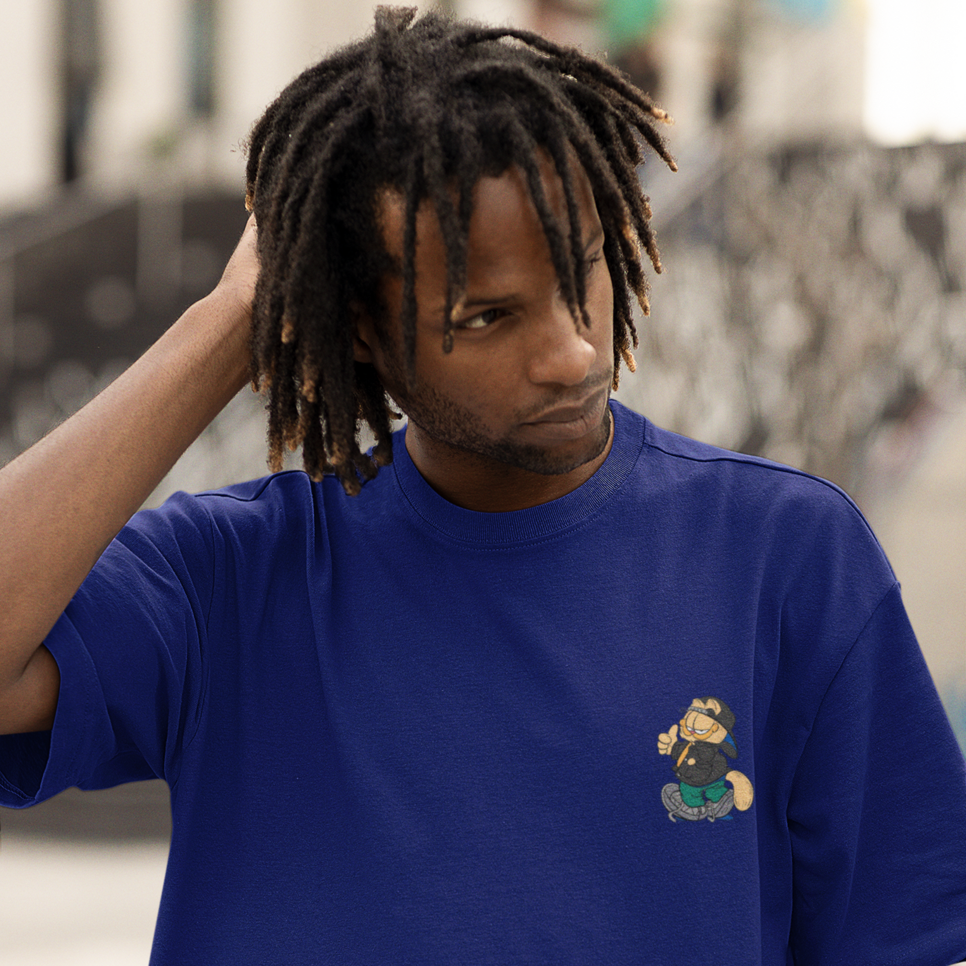 Garfield Premium Royal Blue Oversized Typography Back Printed T-shirt