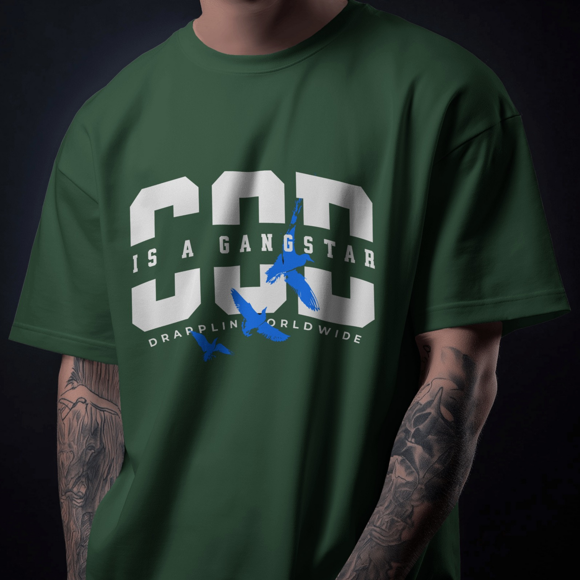 God Gangster Premium Forest Green Oversized Typography Printed T-shirt