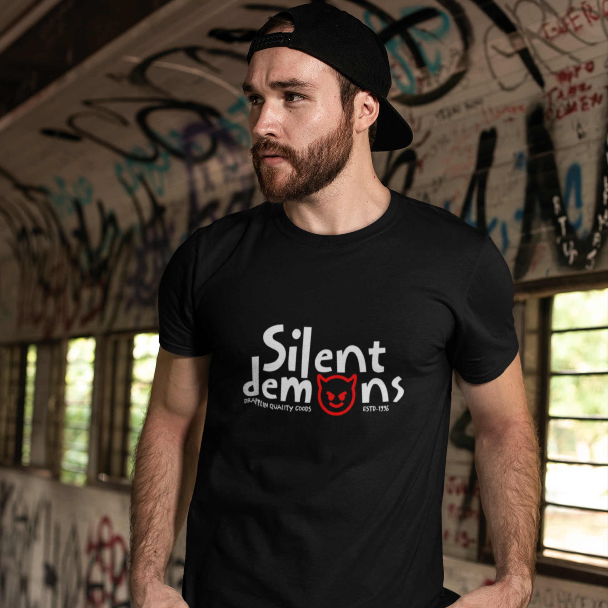 Silent Demons Black Crew Neck Graphic Printed T-shirt