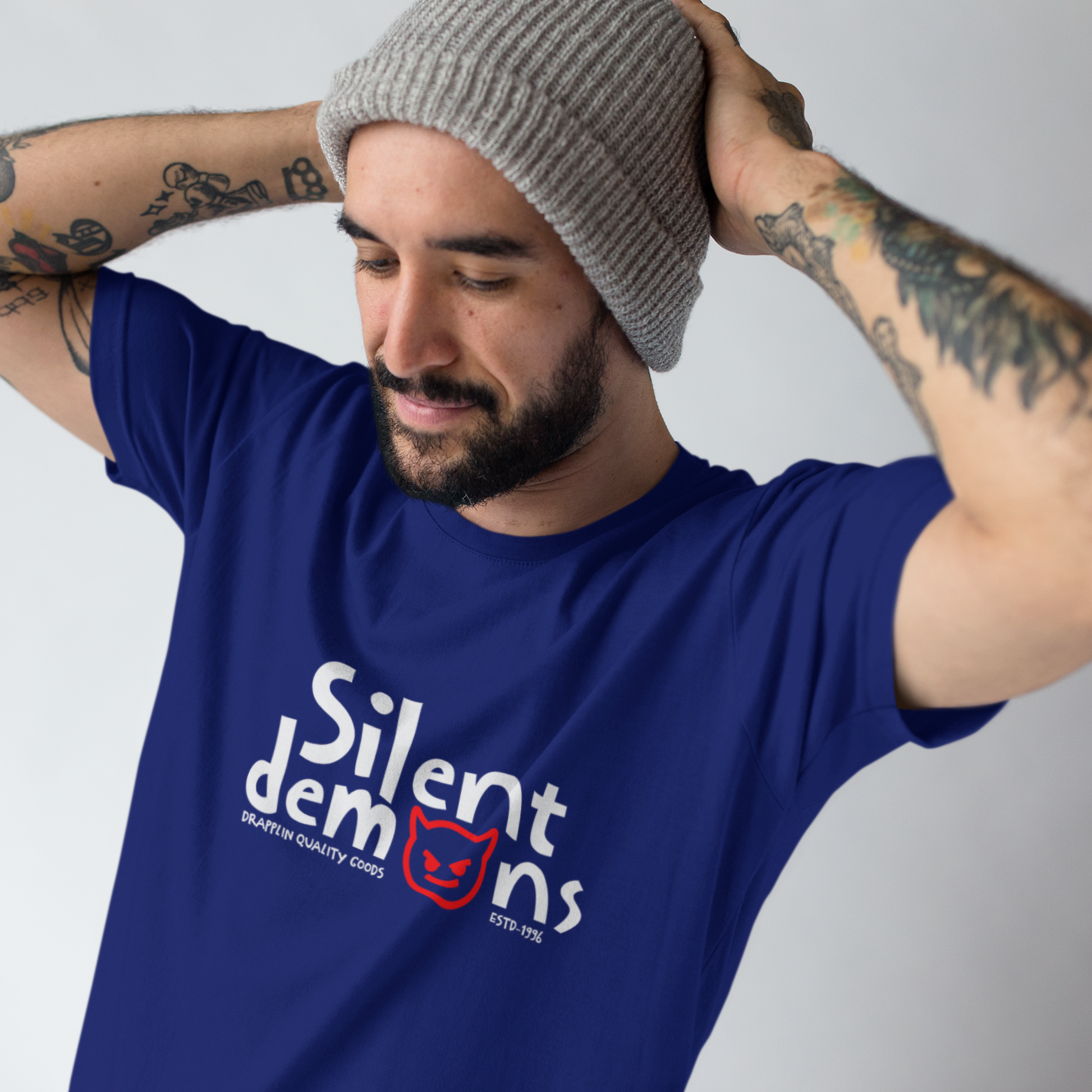 Silent Demons Royal Blue Crew Neck Graphic Printed T-shirt