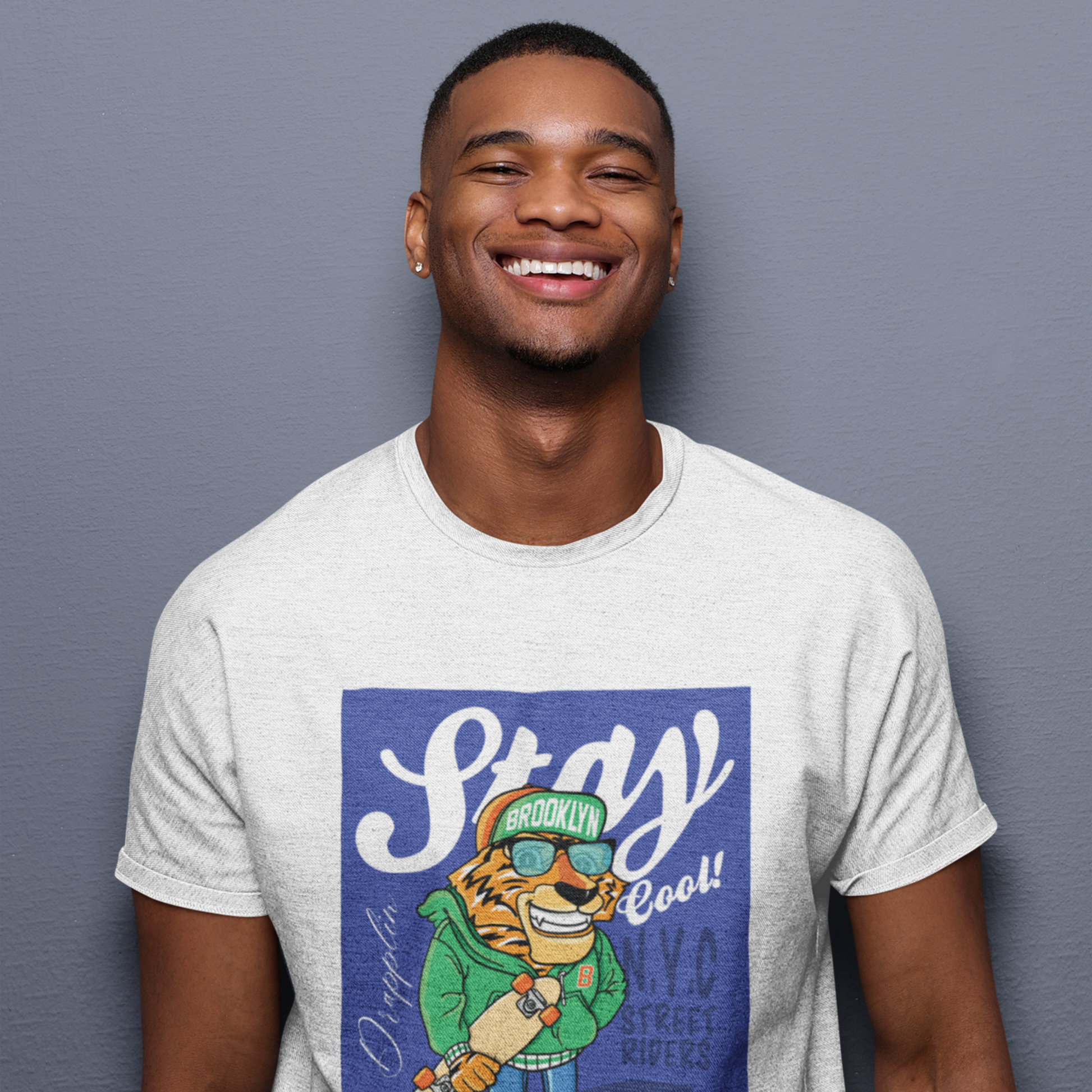 Stay Premium White Crew Neck Graphic Printed T-shirt