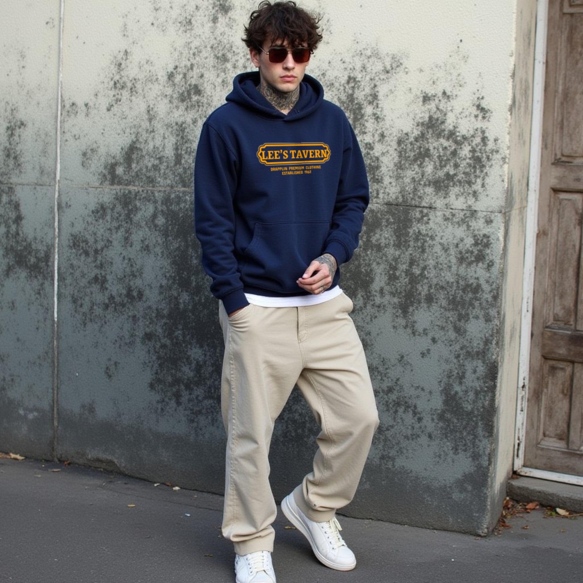 Tavern Unisex Regular Fit Navy Blue Printed Hoodie