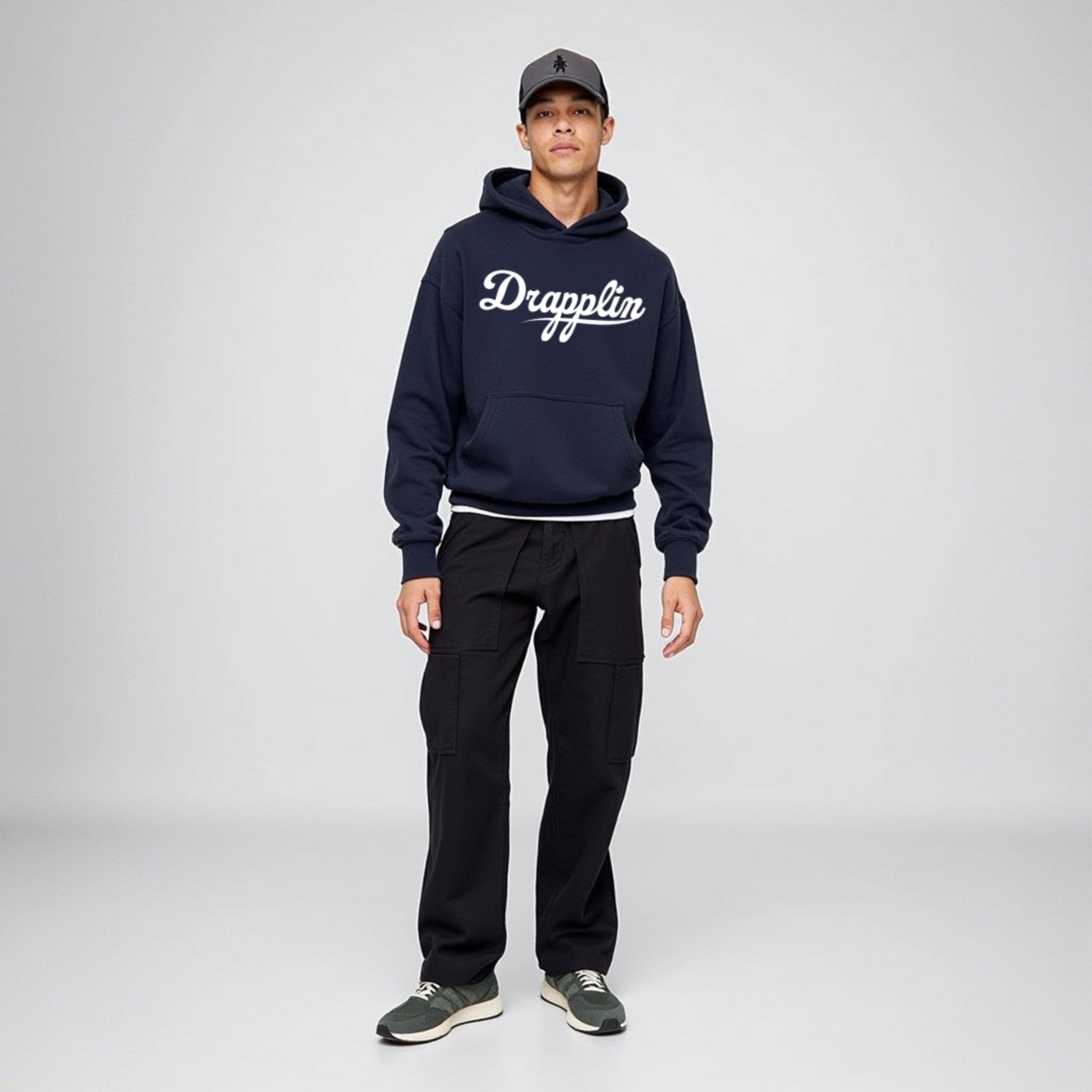 Drapplin Unisex Oversized Navy Blue Typography Printed Hoodie