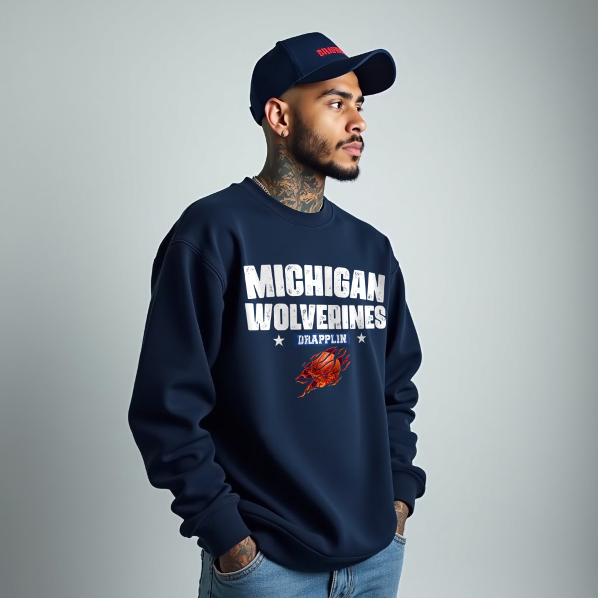 Michigan Unisex Navy Blue Premium Oversized Sweatshirt