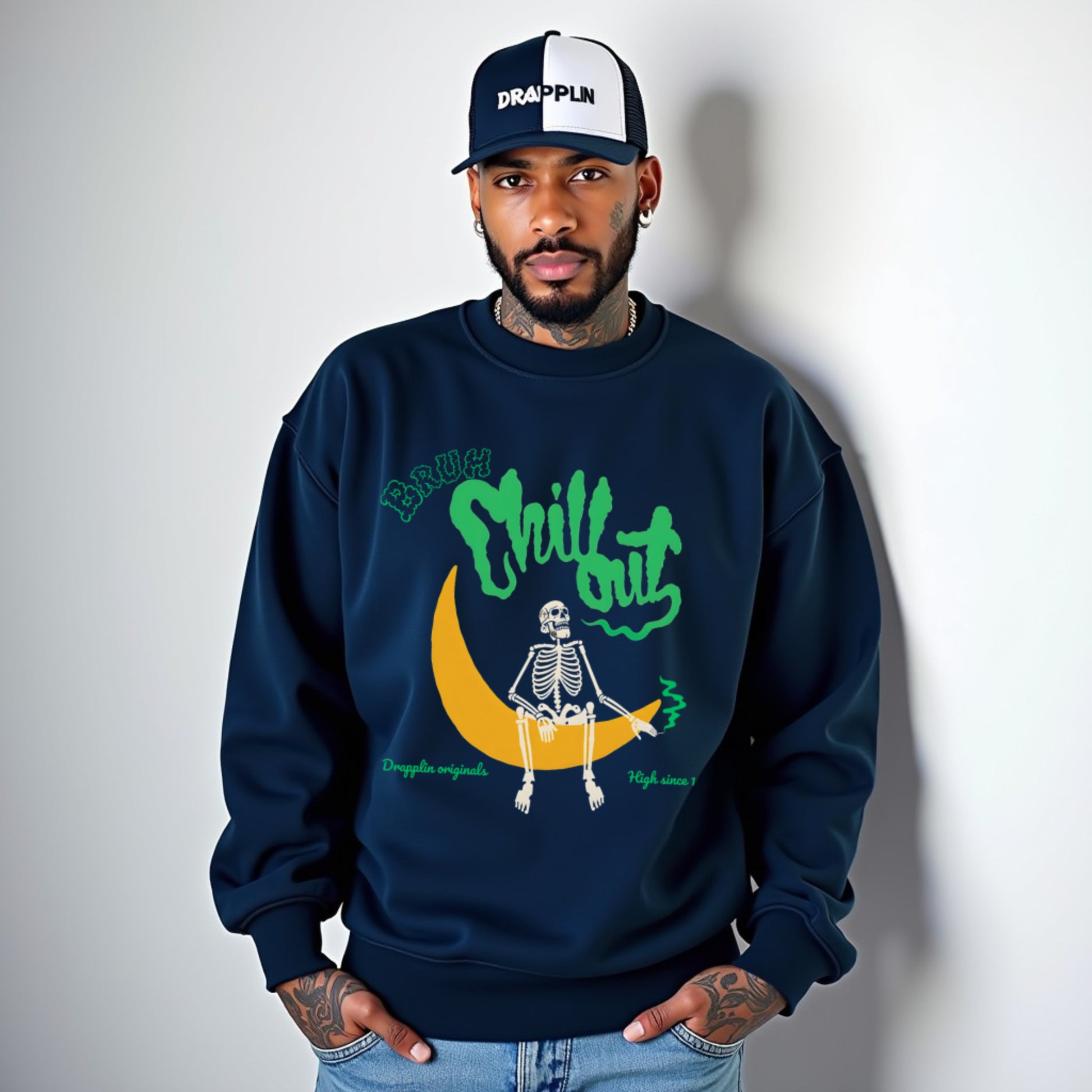 Bruh Navy Blue Premium Oversized Printed Sweatshirt