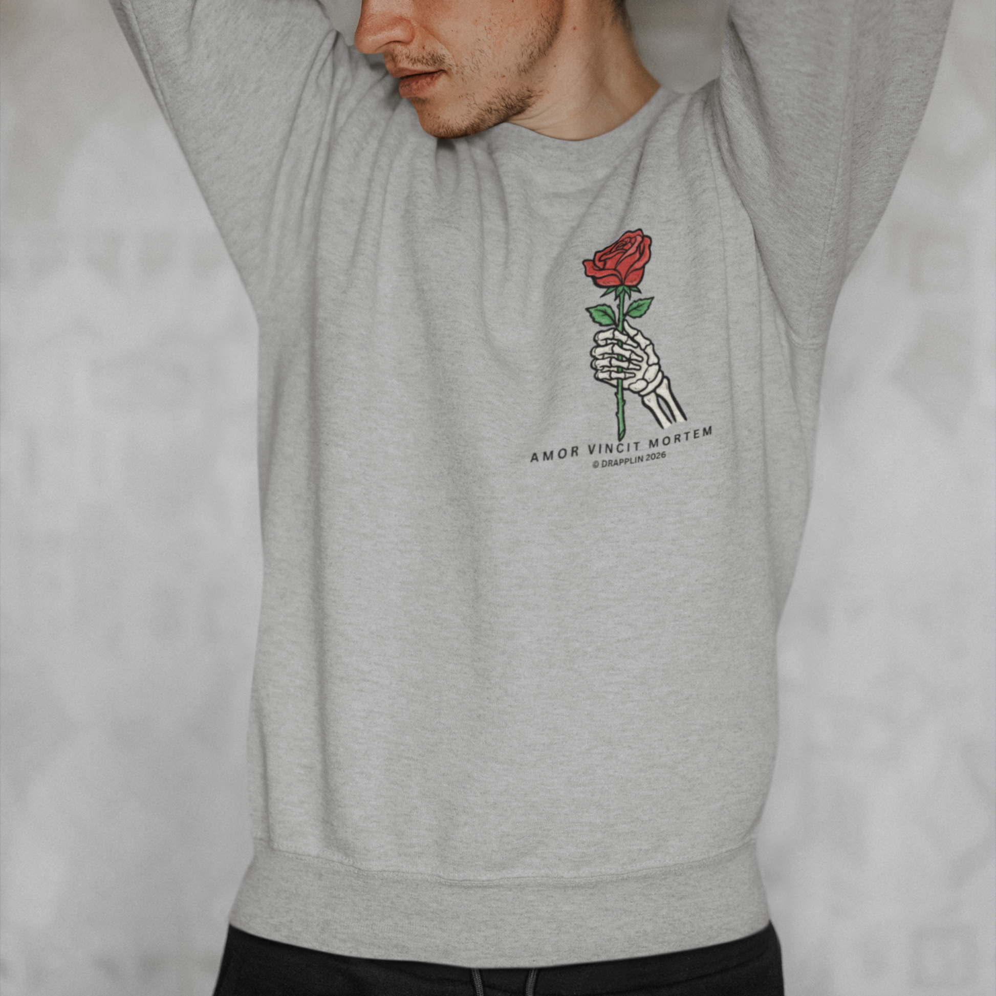 Amor Grey Mélange Unisex Premium Regular Printed Sweatshirt