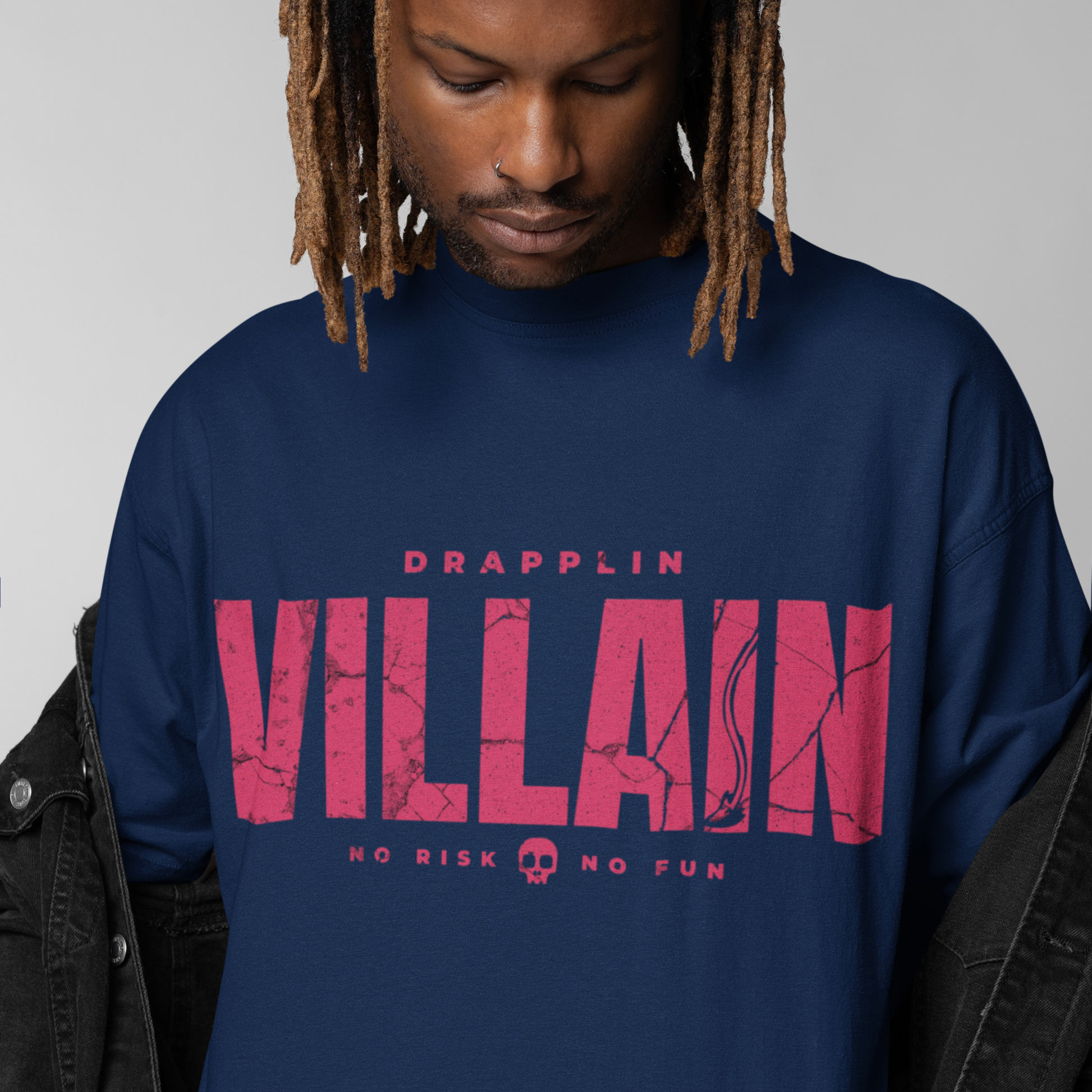 Villain Premium Navy Blue Oversized Typography T-shirt
